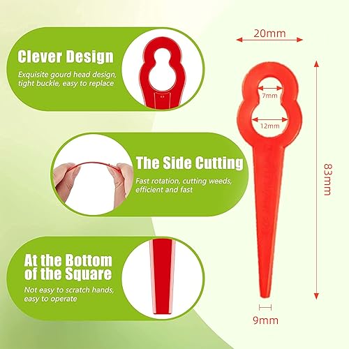 100 coltelli di ricambio per erba, in plastica, 83 mm, lame per tagliaerba senza fili, ricambio per tagliaerba a batteria E-inhell
