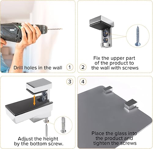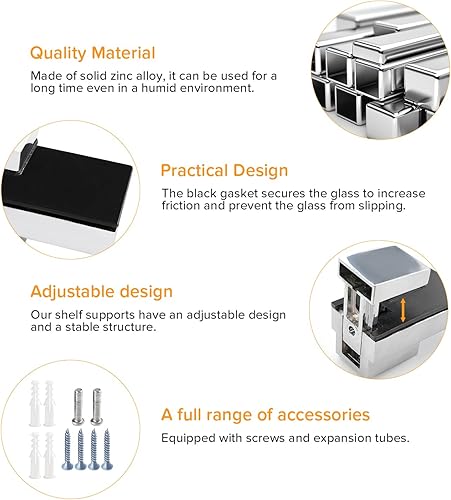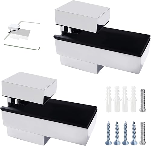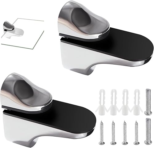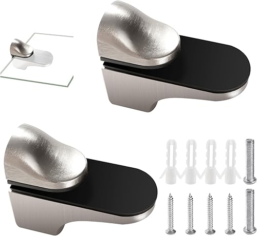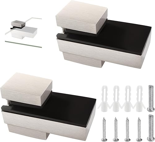 2 Pezzi 5-18 mm Clip di Supporto Vetro Regolabili, Lega di Zinco Staffe per Ripiani in Vetro, Supporto Mensola Vetro, per Pannelli in Vetro e Legno con Spessore, Spazzolato Argento