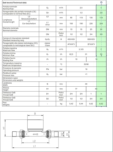 MISURATORE DI FLUSSO (CONTATORE ACQUA) CON USCITA AD IMPULSI - WATER FLOW METER 1 Imp./L Qn 2,5m³/h