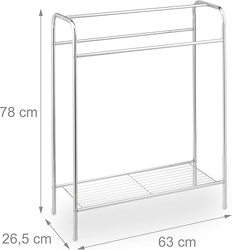 Relaxdays Portasciugamani da Terra con Ripiano, Portasalviette 3 Bracci, Autoportante, 78x63x26,5 cm, Acciaio, Argentato