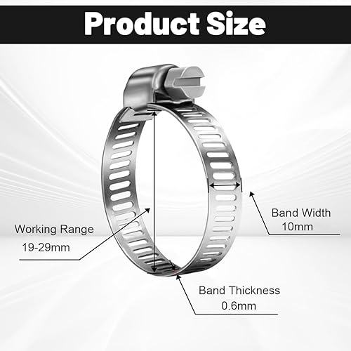 10 pezzi Fascette Stringitubo,Fascette stringitubo da in inox 19-29mm,fascette metalliche, Fascetta stringitubo regolabile,adatto per Tubi Gas, Acqua