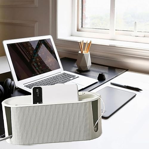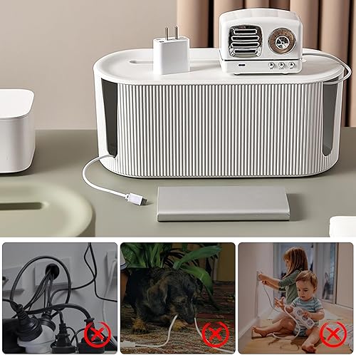 Scatola Cavi Con Coperchio, Scatola Nascondi Fili, Gestione Cavi Box, Scatola Per La Gestione Dei Cavi, Scatola Organizer Per Cavi, Per Nascondere i Cavi Ela Striscia Di Alimentazione (Bianco)