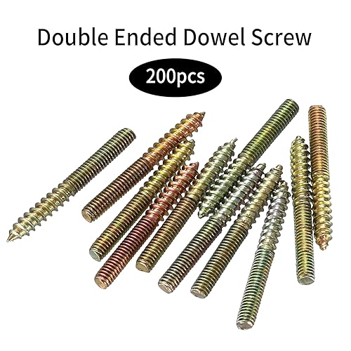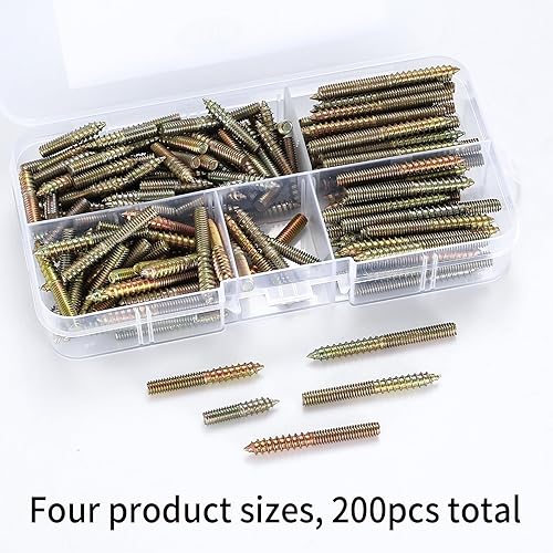 200 Pezzi M4 Vite a Doppio Filetto, Viti a Doppia Estremità, Vite a Doppia Testa, Barre Filettate a Doppia Estremità, Viti Autofilettanti, Viti a Doppia Filettatura per Fissaggio di Mobili Legno
