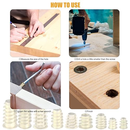 Inserto Filettato 155 Pezzi Boccole Filettate per Legno Inserti Filettati M4 M5 M6 M8 Inserti a Vite di Strumenti Assortimento per Noci per Mobili in Legno