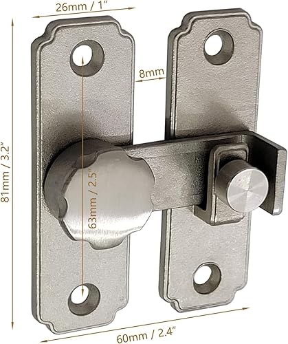 2 chiavistelli a scatto per cancello in acciaio inox 304, chiusura di sicurezza per porta di fienile (180 gradi, argento)