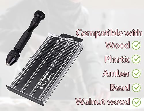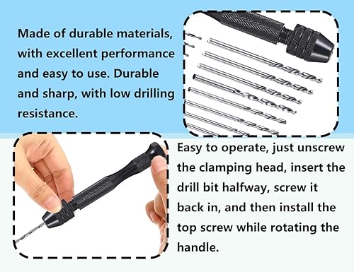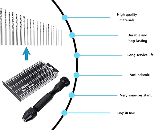 Lhbwhiz 21 pezzi set di trapani a mano,mini morsa a perno per trapano,punta elicoidale,trapano manuale elicoidale,mini trapano,trapano per legno,per modellismo,foratura fai da te(nero,0,3-1,6 mm)