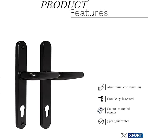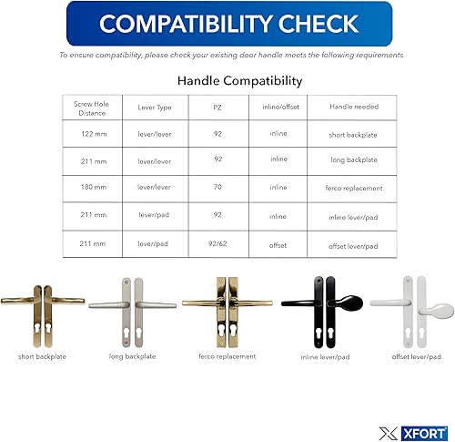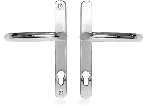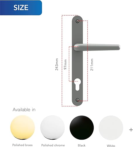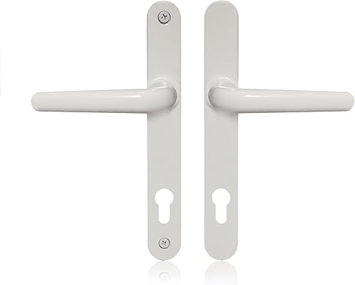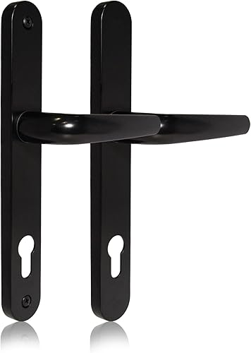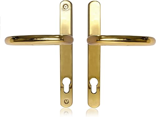 Maniglia per porta con meccanismo interno a molla, in PVC-U, distanza maniglia/serratura 92 mm, distanza tra centri di fissaggio delle viti 210 mm, con doppia smaltatura, set doppio, oro