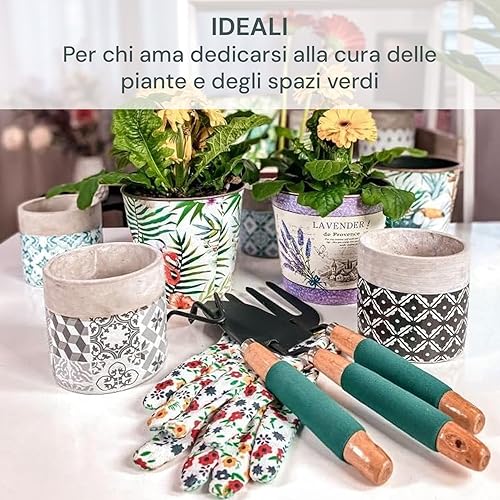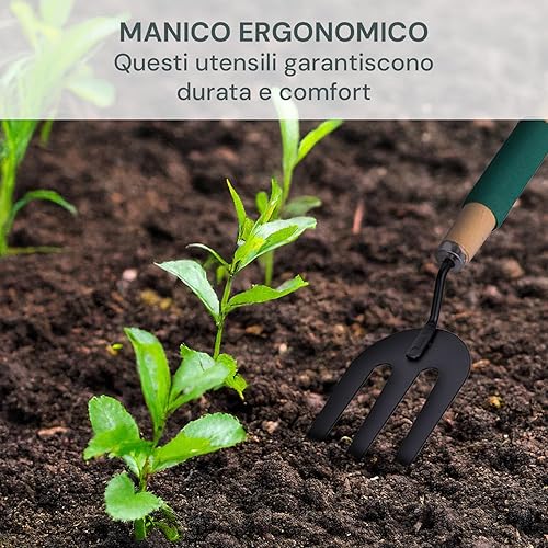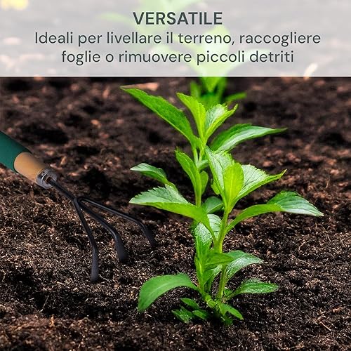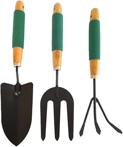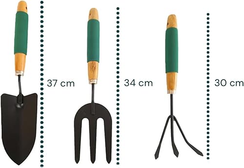 Zendea Set 3 Utensili da Giardino con Rastrello per Raccogliere Foglie, Una Forchetta per Trapiantare Fiori e Spade per Scavare il Terreno - Realizzati in Materiali Resistenti e Manico Ergonomico