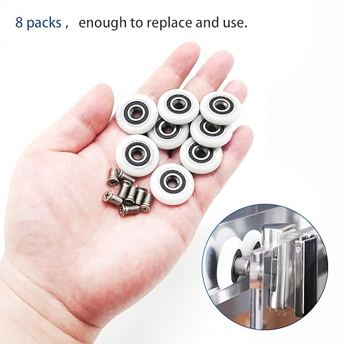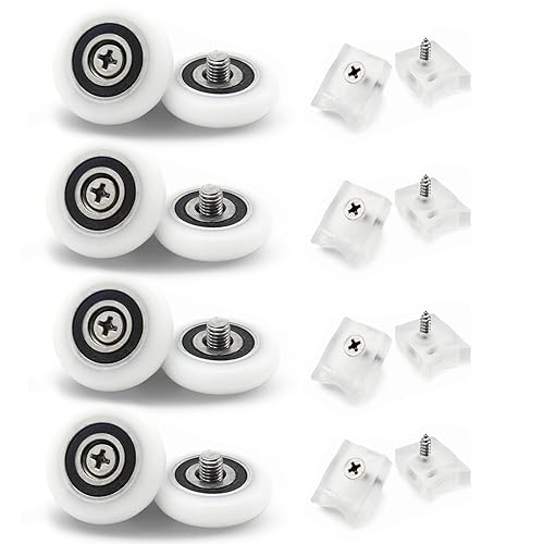 Rotelle per Box Doccia, 8 pezzi Cuscinetti Box Doccia, 25 mm Rotelline Box Doccia, Ruote Doccia, con Viti per Porta Della Doccia e 8blocchi trasparenti anti-collisione