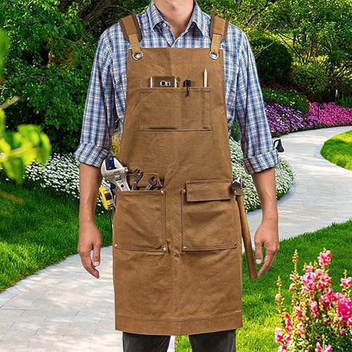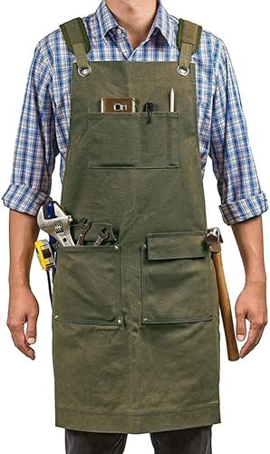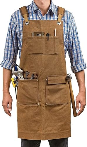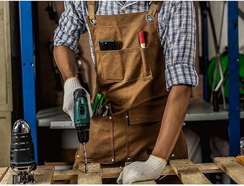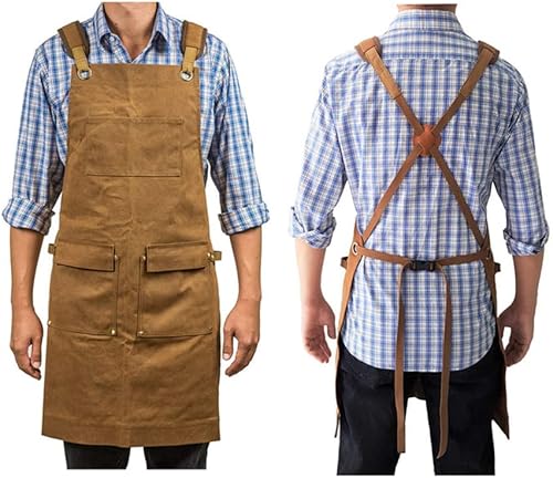 Tasche Grembiule Impermeabile, Grembiule da Lavoro in Tela con Cinghie Regolabili Grembiule da Lavoro, Chef Grembiule Le Cinghie Incrociate per Falegname Tatuatore Fabbro Pittore Barista