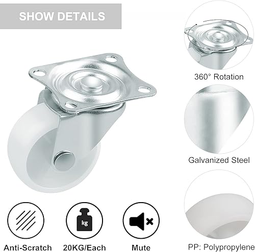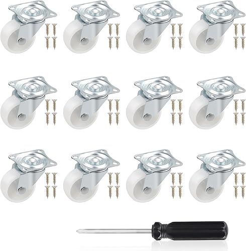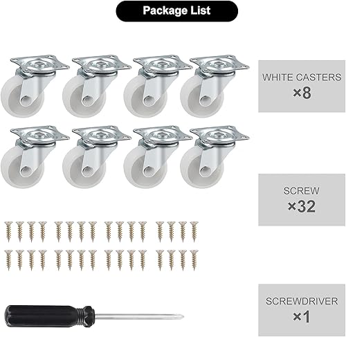 Set di 8 ruote girevoli per mobili, senza freni, girevoli a 360°, bianche, con 1 cacciavite e 32 viti, altezza 50 mm, capacità di carico totale 160 kg