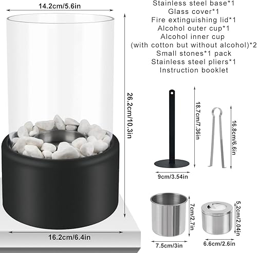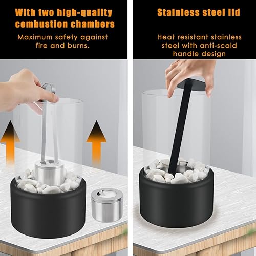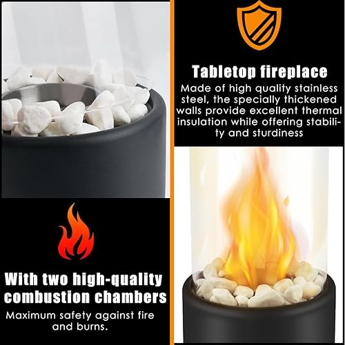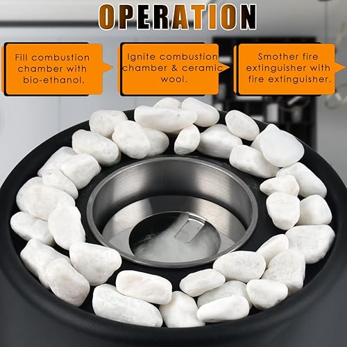 Camino da tavolo, fuoco da tavolo con pietre decorative e 2 camere di combustione (serbatoi) per una combustione infinita, camino a etanolo biologico, durata della combustione, camino a