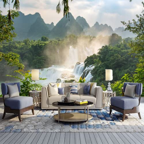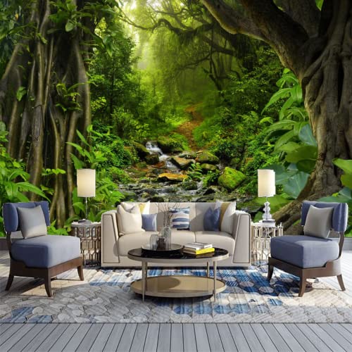 Carta da Parati 3D Giungla Tropicale Con Fiume, Quadri Murali Flusso Nella Giungla, Sfondo Murale 400 x 280 cm - per Camera letto, Soggiorno