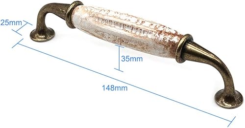 NUZAMAS - Set di 10 maniglie vintage in ceramica per ante di armadietti, cassetti, in lega di zinco, lunghezza 148 mm, manopole per armadio da cucina e guardaroba, da centro a centro 128 mm