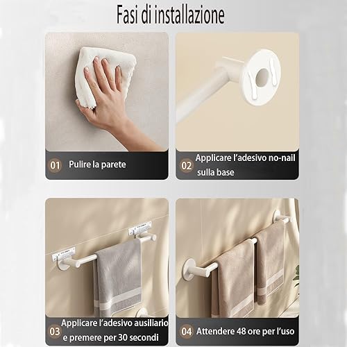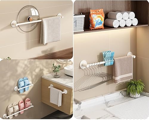Portasciugamani a parete in alluminio non poroso, autoadesivo, con barra singola per banco lavanderia, cucina, bagno e doccia, portata 20 kg (30cm, Bianco)