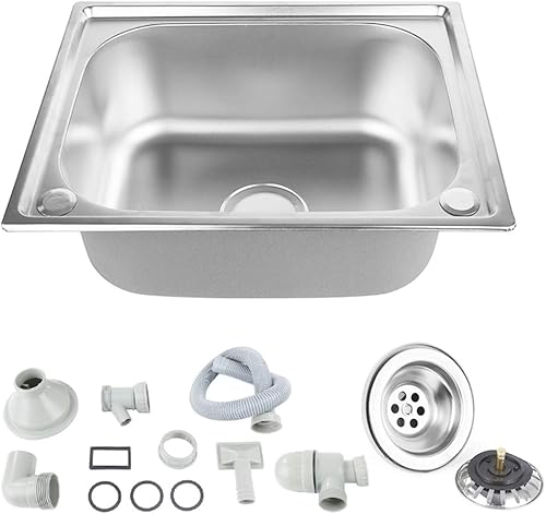 Lavello da Cucina in Acciaio Inox - 1 Vasca Con Sifone e Piletta, Scolapiatti, da Incasso, 50 x