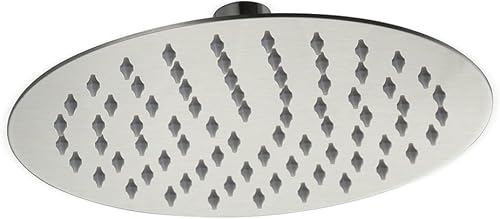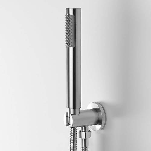Set doccia satinato con braccio 35 cm soffione 25 cm e kit doccia con doccino in ottone, presa acqua e supporto, GEMINI