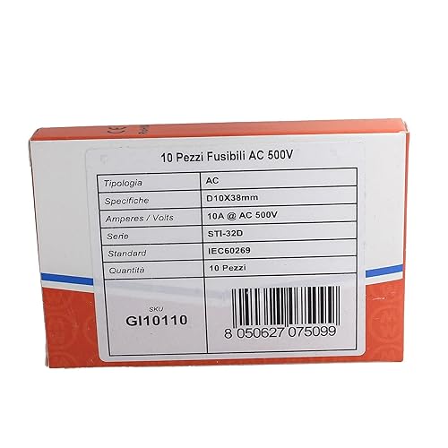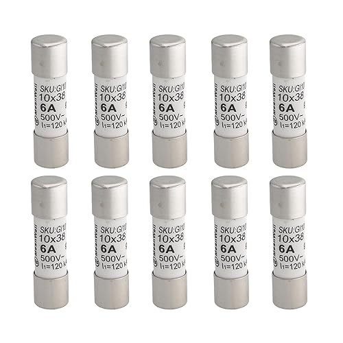 10 Pezzi Fusibili AC 500V 6A, Fusibile D10x38mm, IP20