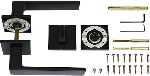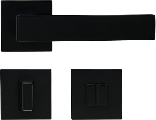 Maniglia Garda per per bagno e WC | maniglia per porta moderna e di alta qualità | ferramenta per porta con rosetta | per porte interne e delle camere | Nero