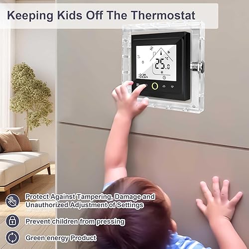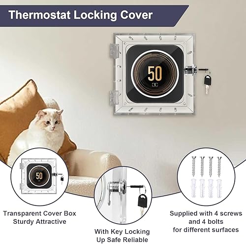 Scatola di blocco termostato con chiave, copertura termostato con blocco protezione termostato, copertura protettiva per termostato trasparente, quadrata, adatta a termostati più piccoli di