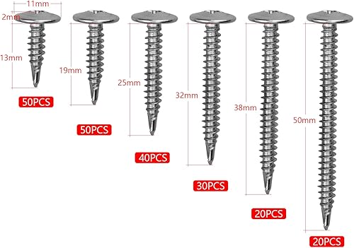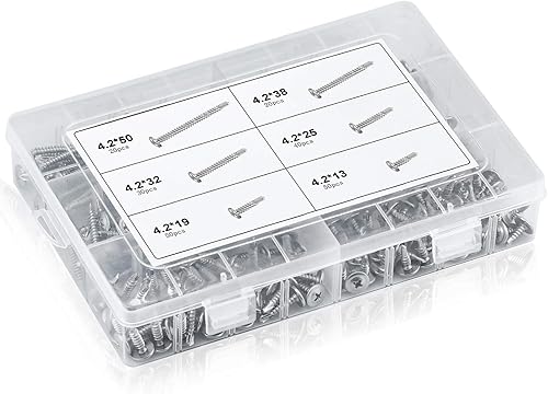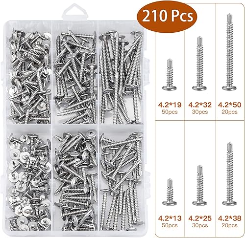 Set di 210 viti autofilettanti in acciaio inox: 13 mm, 19 mm, 25 mm, 32 mm, 38 mm, 50 mm