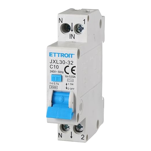 INTERRUTTORE MAGNETOTERMICO DIFFERENZIALE SALVAVITA PER BARRA DIN 1 MODULO 1P+N 10A C10 240V 30mA 4.5KA