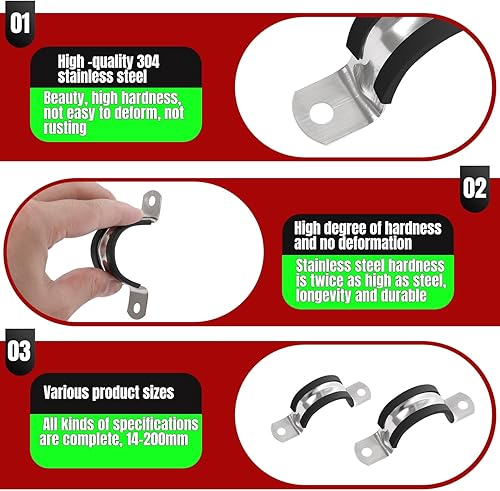 Fascette per tubi, fascetta per tubi in acciaio inossidabile 304 da 48 mm di diametro, fascetta per tubi a U per tubi, tubi o cavi metallici (12 pezzi)