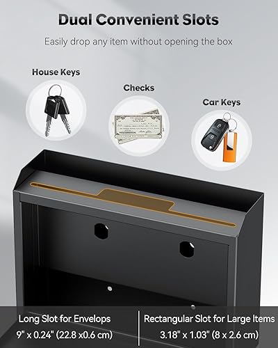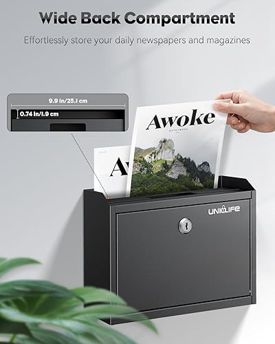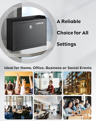 Uniclife Cassetta postale da parete con serratura a chiave e porta giornali, scatola per suggerimenti con slot superiori, cassetta di sicurezza, scatola per donazioni in metallo, urne per attività