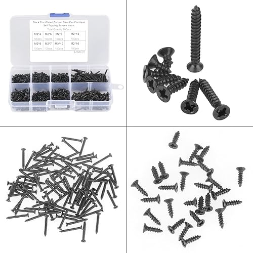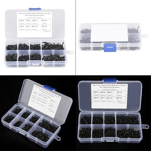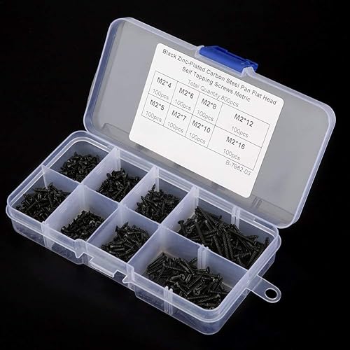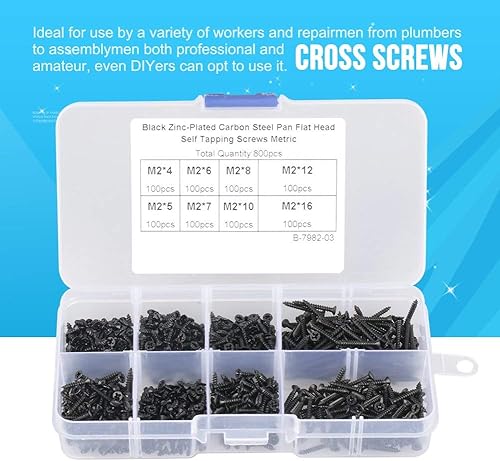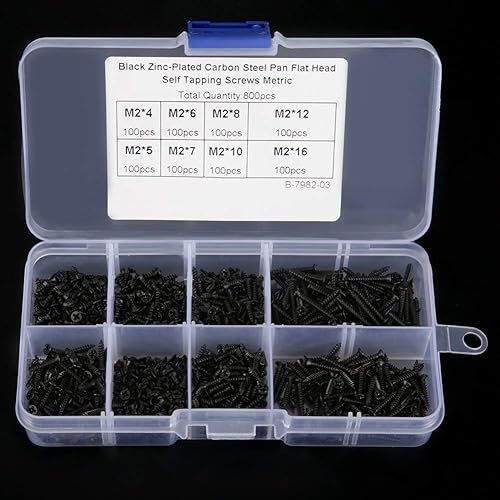 Kit viti autofilettanti in acciaio al carbonio nero 800 pezzi M2 con testa piatta a croce con scatola portaoggetti