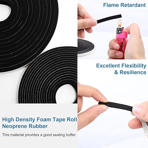 Nastro Sigillante Autoadesivo in Gomma, 3 Rotoli 6x3mm 15m Schiuma Nastro Paraspifferi Porta, Alta Densità Neoprene Adesivo Isolamento Nastro Sigillante per Anti Freddo, Rumore e Collisione