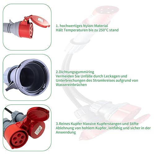 Starkstrom - Adattatore 32 A a 16 A, 5 poli, IP44, cavo di prolunga da 50 cm, per industria, esterno