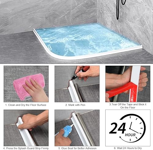 Barriera Doccia Ferma Acqua Shower Barrier Barriera Doccia Pieghevole Barriera Antiacqua Doccia Autoadesivo Bordo per Piatto Doccia Lavelli di Bagno e Cucina (2M, White)
