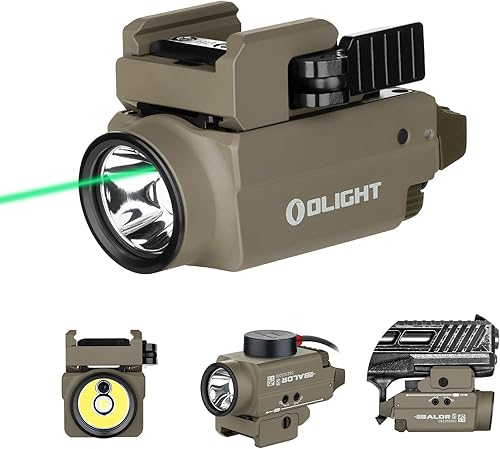 OLIGHT Baldr S 800 Lumen Torcia con Puntatore Verde 2 Livelli Luminosità, Montaggio Picatinny/GL, per Attività All'aperto Caccia, Sicurezza e Lavoro notturno (Nero)