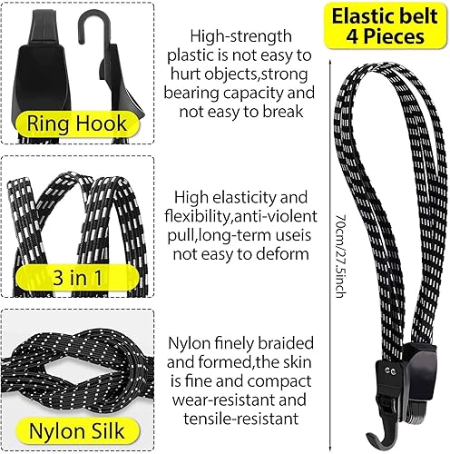 5 Pezzi Corda Elastica,Elastico Portapacchi Bicicletta,Cinghia Elastica Moto,Rete Elastica,Corde Elastiche Con Gancio per Portapacchi,Portabagagli,Moto