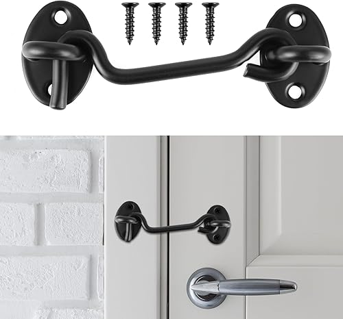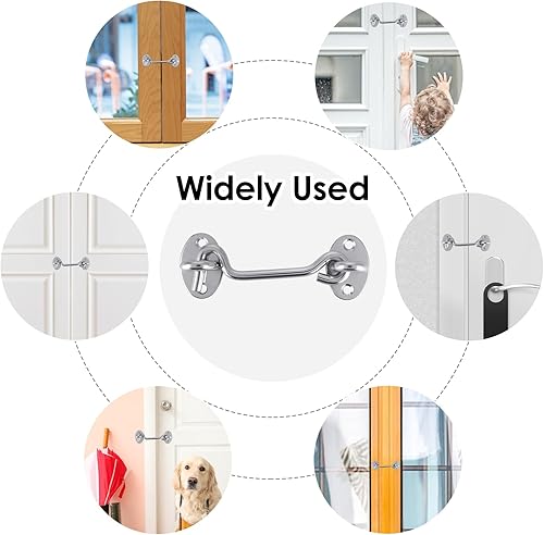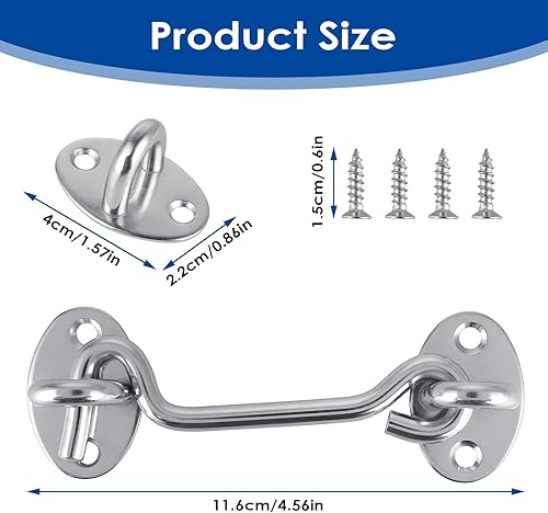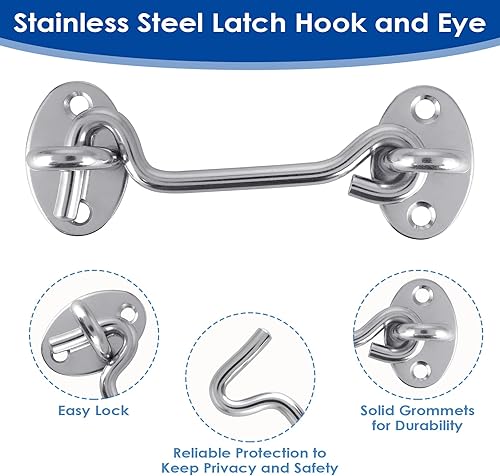 Amabro Chiusura a gancio e occhiello da 10,2 cm, in acciaio inox, con viti di montaggio, chiusura per porta fienile, gancio per armadio, sicurezza per privacy, per finestra, porta, camera da letto,