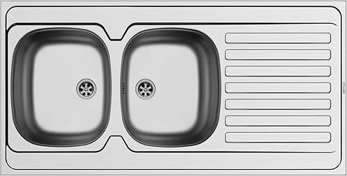 INTERNATIONAL (120X60) 2B 1D, Lavello ad incasso soprapiano acciaio INOX, liscio, 100118502