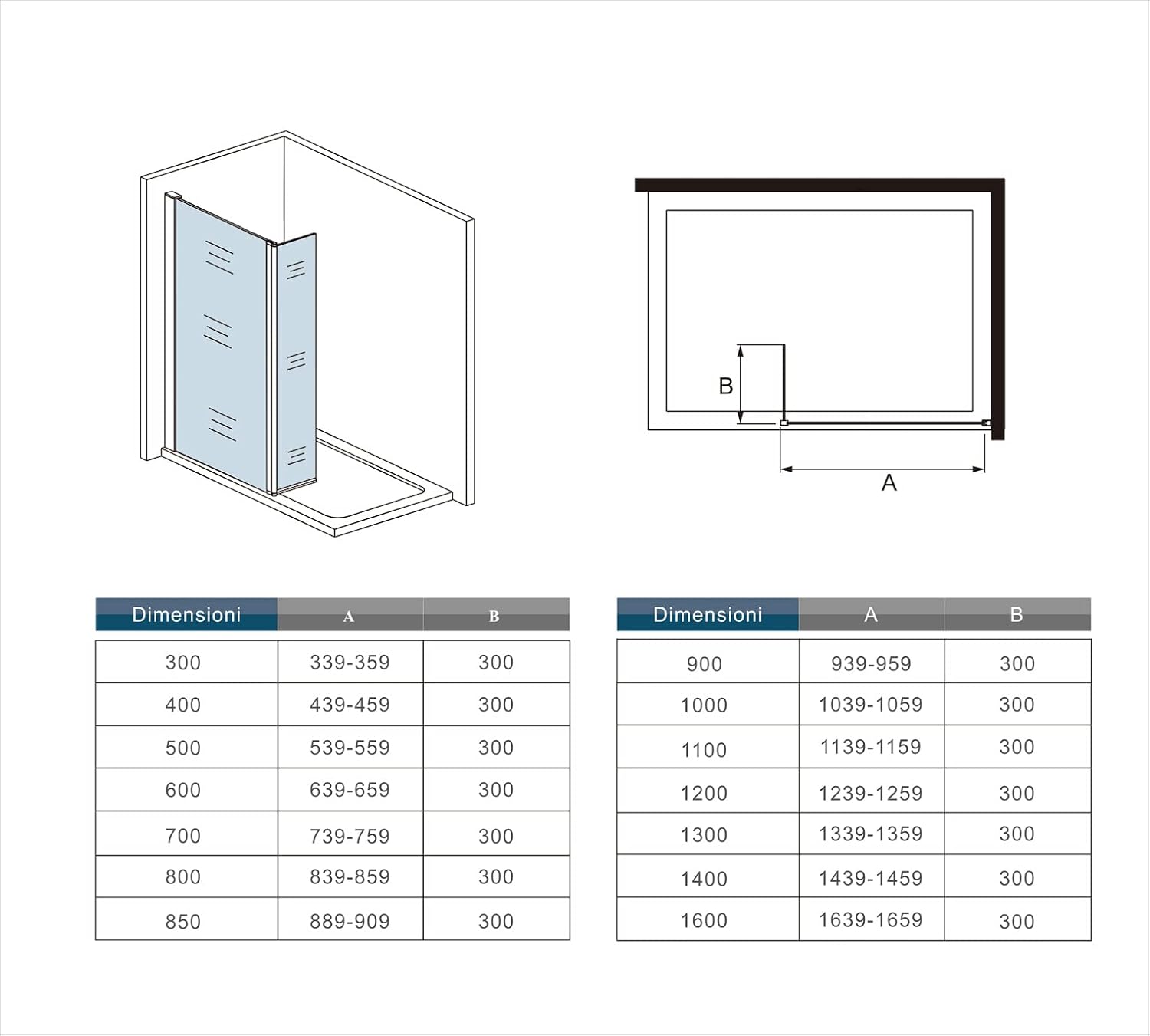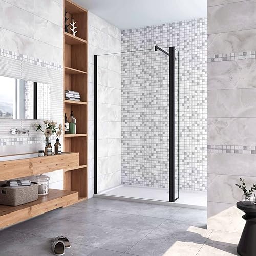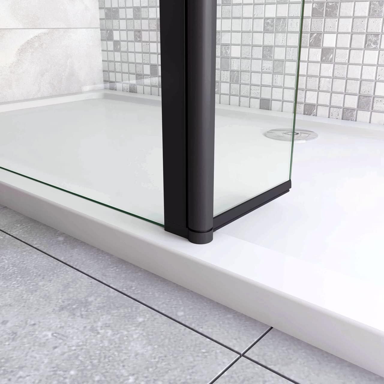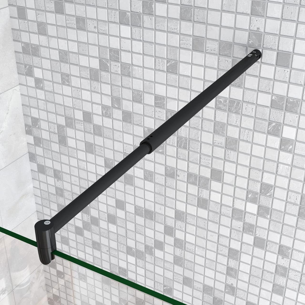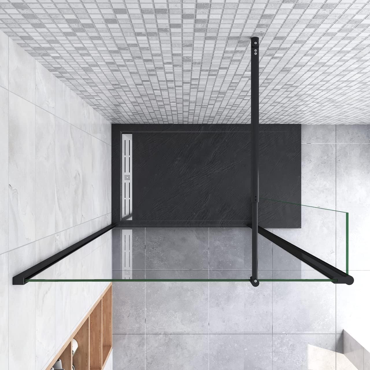 Walk in Doccia 120x200cm Due Pareti (80+40) cm Vetro 8 mm Temperato Trasparente Anticalcare Barra Stabilizzatrice 70-120 cm Nero Opaco