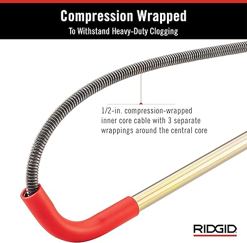 RIDGID 59787 Stasatore per WC K-3, cavo sturatubi per WC da 90 cm con testa a bulbo per liberare WC intasati