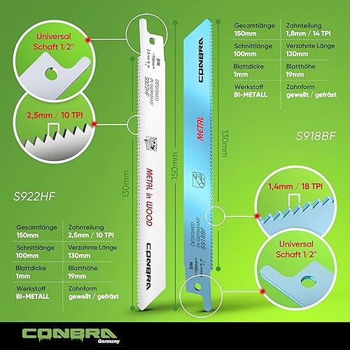 Manico per sega con 4 lame per sega a sciabola, 150 mm, lama per legno, metallo e plastica