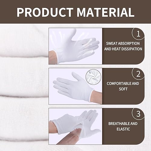12 Paia di Guanti in Cotone, Guanti in Tessuto Bianco Guanti, Guanti Sottili Cotone per il Giardinaggio Guanti Gioielli Ispezione Taglia Unica (Bianco)