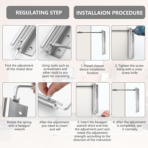 Molla Chiudiporta Automatico in Acciaio Inossidabile – Perfetto per Porte Interne ed Esterne, Molle di Regolazione per Porta Superiore e Inferiore, Chiusure a Chiusura Automatica