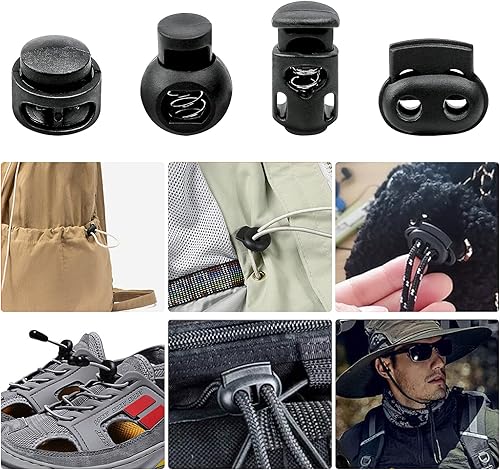 100 morsetti a molla a doppio foro singolo, 4 stili, fermacorda, rotondi, in plastica, per campeggio, escursioni, sport, zaini, nero, bianco, L