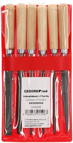 GEDORE set di lime a chiave rossa, set per metallo, 6 pezzi, ceppo piatto, triangolare, quadrato, semicircolare, tondo, R93000006