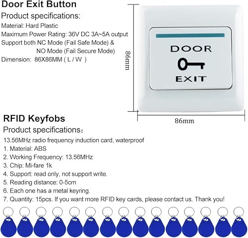 FTes RFKits TUYA Kit di Controllo Degli Accessi Impermeabile,Tastiera Touch RFID,Serratura Elettronica a Chiave,Alimentazione 3A,Pulsante del Cambio,Campanello Cablato,15 Chiavi da 13,56MHz