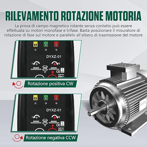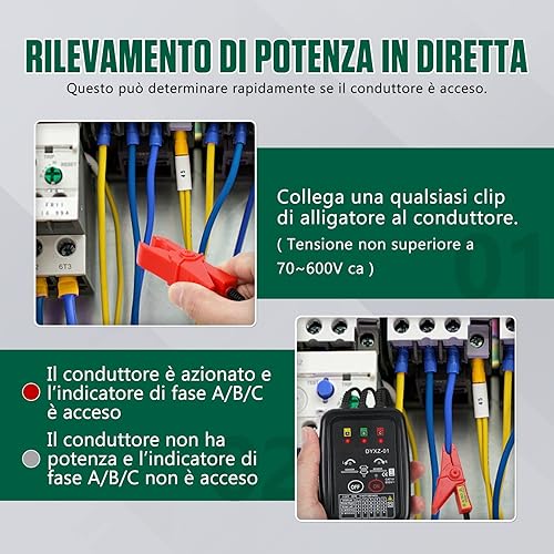 Senso Ciclico Fasi Tester Cercafase Senza Contatto Rotazione Fasi di Fase AC 70V~600V, Rilevamento Sequenza Fasi, Rilevamento Mancanza Fase, Rilevamento Rotazione Motore