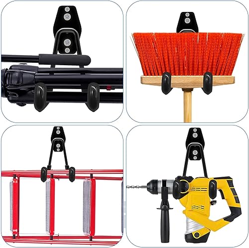 2 pezzi Ganci per Garage Doppio Gancio in Acciaio per Garage Con Rivestimento Antiscivolo E Elevata Capacità Portante per Utensili Elettrici Scale Biciclette