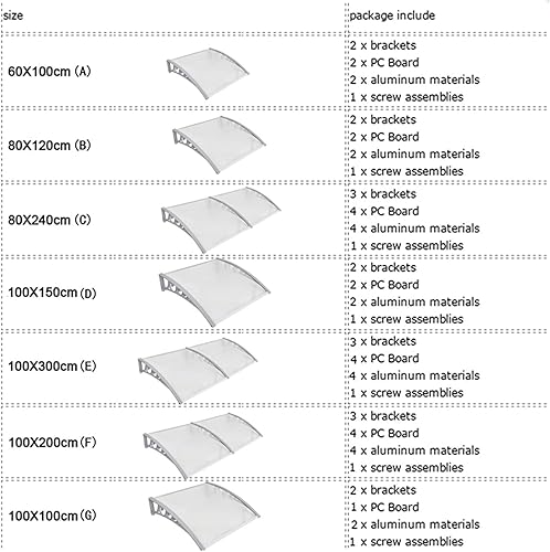 Pensilina Tettoia per Porta d'Ingresso,Pensilina Modulabile Tettoia per Porta o Finestra con Protezione UV Copertura in Policarbonato Parapioggia,60 * 100 cm (bianco)