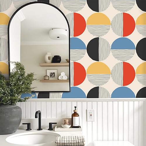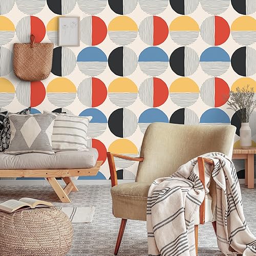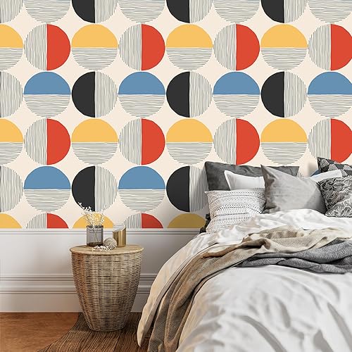 Carta da Parati Geometrica Boho Metà Secolo Pellicola Adesiva Geometrica Rotonda Astratto Pellicola Adesiva per Mobili Fantasia Carta da Parati Autoadesiva per Camera Letto Bagno 44,5cmx300cm