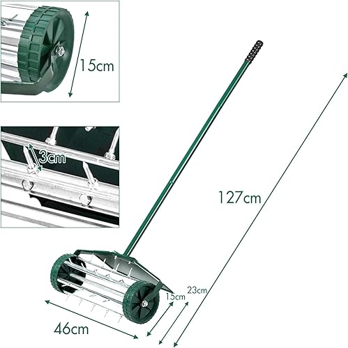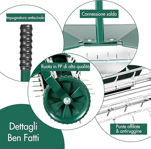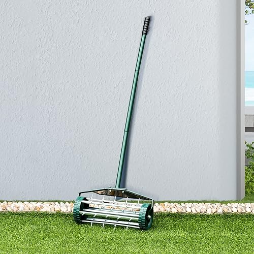 Arieggiatore Manuale per Prato, Aeratore da Giardino con Rullo Spinato e Parafango, Unghie da 3 cm, Ideale per Cortili, Giardini e Prato