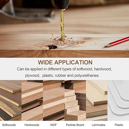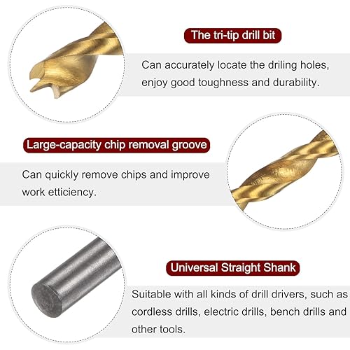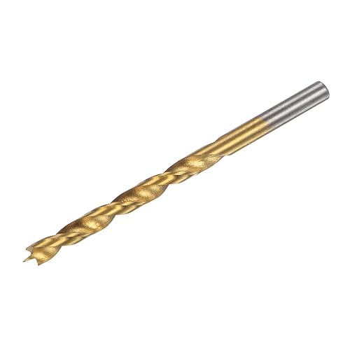 Punta Trapano Brad Point 5.5mm(7/32') Dia Dritto Codolo Tondo Punta Trapano Metrica Brad Point Spirale Punta Elicoidale per Falegname Lavorazione Legno Gomma, Dorato